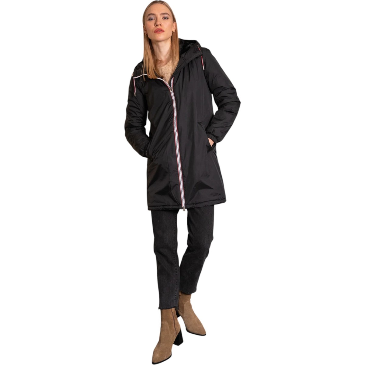 Laura Jo - Manteau imperméable long fourré noir