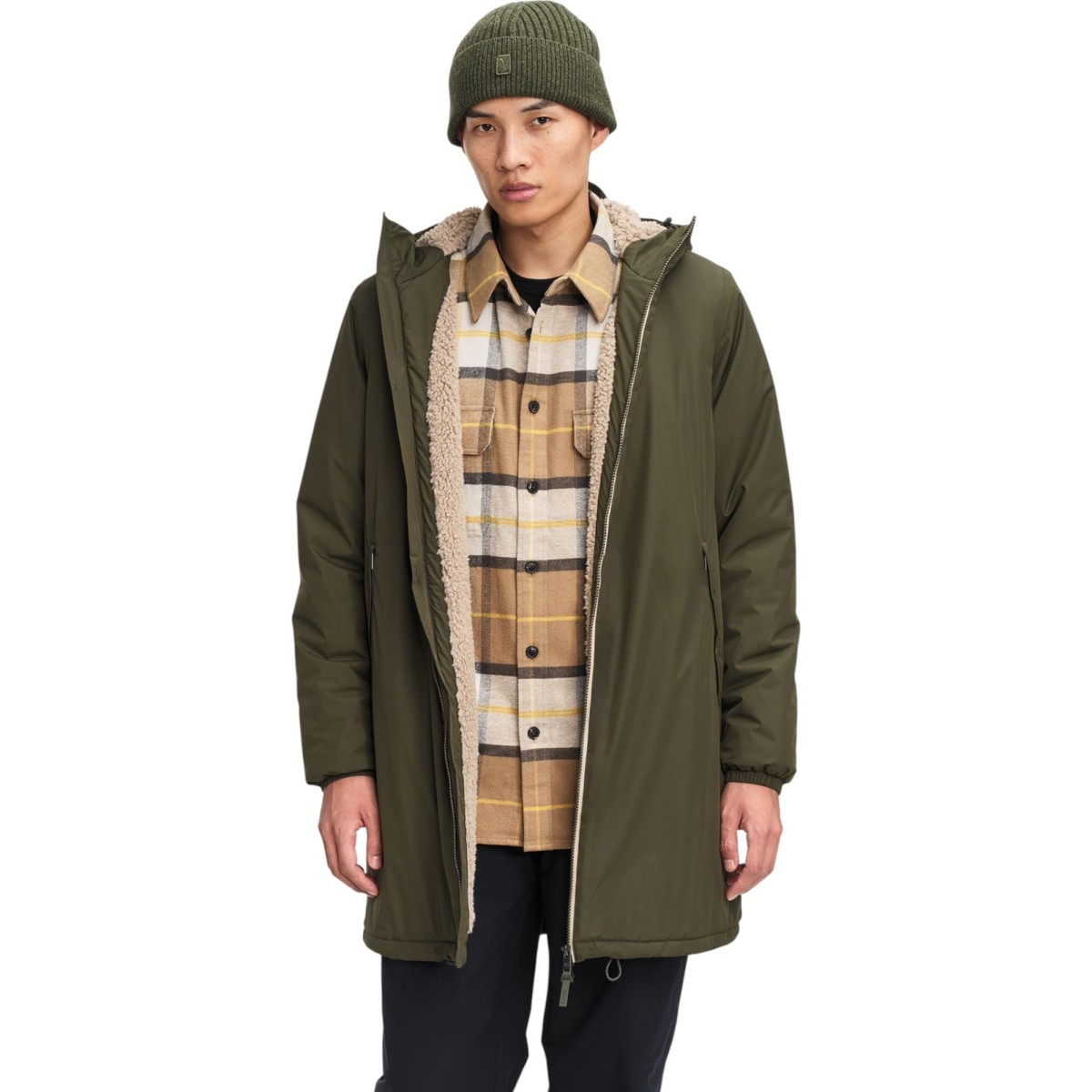 - Capuche attenante et ajustable avec cordons et serre-cordons